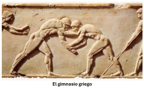 Gimnasio se deriva de una palabra griega que significa "desnudez", pero con un sentido distinto a la connotación actual. Bajo el principio de "mente sana en cuerpo sano", en la antigua Grecia, los gimnasios eran lugares donde se practicaban algunas disciplinas deportivas, y para hacerlo, se despojaban de sus vestiduras; es decir, entrenaban desnudos. Pero además recibían clases de filosofía, política y retórica.