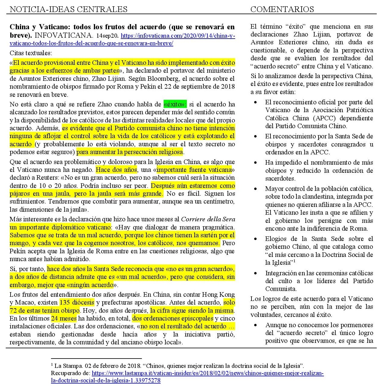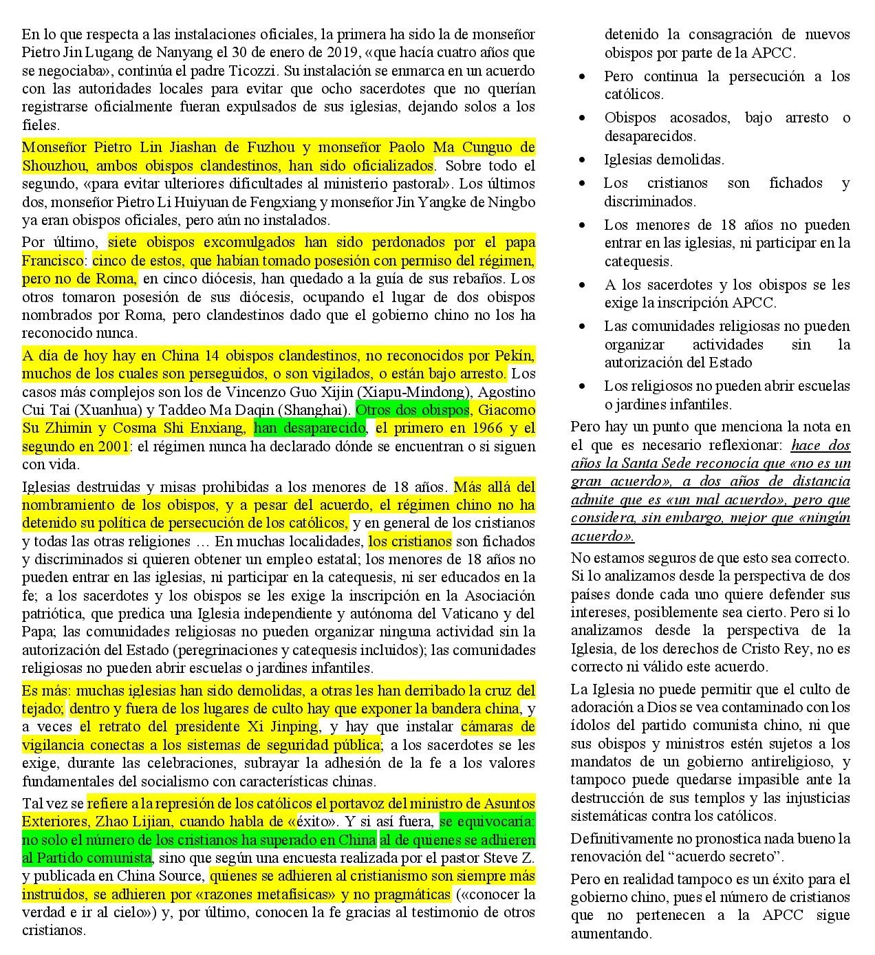 China y Vaticano: todos los frutos del acuerdo (que se renovará en breve). INFOVATICANA. 14sep20.